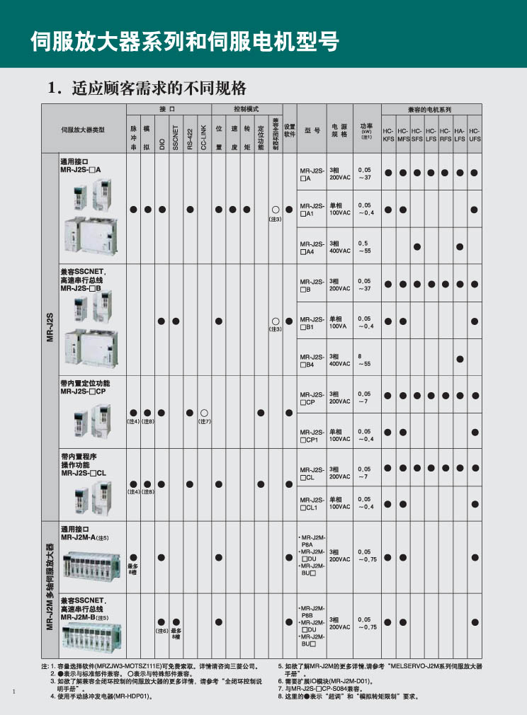 三菱伺服放器系列和伺服電機型號