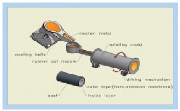 VUHZ Centrifugal casts DEPARTMENT FOUNDRY Principle of centrifugal casting Our foundry produces castings by method of horizontal centrifugal casting (horizontal axis of rotation). Basic principle of this method consists in pouring of molten metal into rotating metallic mold. High revolutions of the rotating metallic mold and centrifugal force of mass of molten metal spread uniformly the metal that gradually solidifies into the shape of a hollow cylinder or circle.