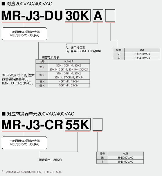三菱伺服電機MR-J3型號表示