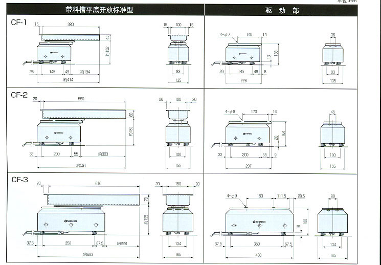 | CF型振動(dòng)給料機(jī)的外觀尺寸圖 |